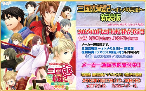 Ohh, excited to see Desert Kingdom for PSP, I definitely want to play it! And DaisyDaisy…. why won’t you release anything new lol stop trying to milk Sangoku Rensenki for all you can and give us something new!! …Knowing me though, I’ll… probably get the report. |D I just love historical otoges… especially Romance of the Three Kingdoms…. >_< Why are you exploiting my weakness DaisyDaisy?