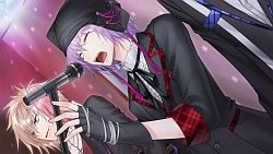 Fujimaru then admits in a backwards way that he will watch over the two of them and Miki’s happy that Fujimaru doesn’t hate him. In fact he helps them out by telling them to stay over at his mansion until the paparazzi calm down. At night Miki sneaks into Nanako’s room saying he couldn’t hold himself back knowing they’re both under 1 roof ;D. Needless to say he starts kissing her and eventually pushes her down on the futon for some sexy time. (zomg hearing shimono say he’s gonna find her erogenous zones and then prpring my ears I died. (/ω\)イヤン) Miki’s music teacher rages at him for not being able to sing properly because he’s too busy thinking about his father who he hasn’t talked to since they had that fight. But just then Miki’s dad comes to visit Fujimaru’s house. He tells Miki that his debut is that night and he freaks out but Nanako offers to go with him for moral support. He performs his song and afterwards everyone goes to Nanako’s house to celebrate. Best End: Nanako and Miki continue dating but he has to wear a disguise when they’re out because he’s an idol now. She intends to study and eventually become his manager. Good End: Miki’s become an an idol but he’s so busy with his activities he barely sees Nanako though he tries to come over her place daily. She makes him dinner and lets him cuddle to re-energize. Bad End: Miki fails to debut so he returns to his emo punk band.