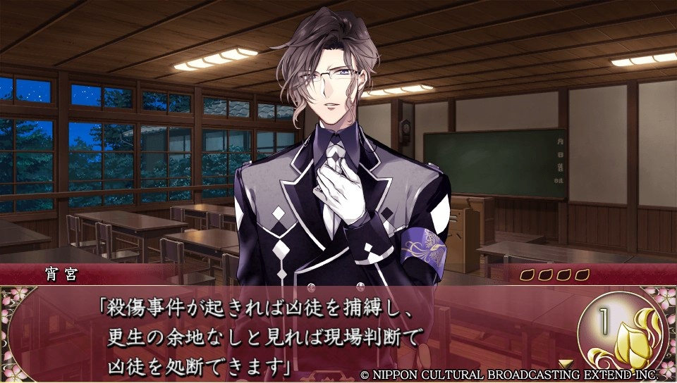 Yoimiya Takashi – Yoimiya was another snooze wagon because he’s just the “sensei” at their ayakashi school (which is basically a school that teaches them how to destroy/purify these bad souls). He’s a former human as well and came to this world because his body on earth is probably in some coma or something due to being attacked by an ayakashi there. He has a lot of battle scars on his back that Mio sees when she accidentally walks in on him dressing. In this route Mio goes undercover into some prostitute house and practices her serving guests with sensei.😂 He asks her to forget her real world life and try to enjoy her new life at Kakuryo. Says that he had a sister who got killed by an Ayakashi back in the human world. After she died, Yoimiya was killed as well and the guilt of not being able to do anything continues to plague him.He also tells Mio that there’s no rule her saying that students and teachers can’t date. 😏 He also wears glasses out of habit but he doesn’t really need them. So then for some reason Kou (who I thought had a route but apparently did not) attacks everyone cause he’s possessed by something. He asks Yoimiya to defeat him but cause Mio is all like nooo he instead gets hurt protecting her. 😑