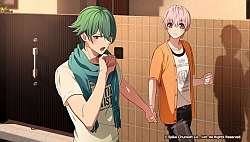 Konparu Takayuki – Konparu and Hinako are secretly dating and nobody, not even his siblings, know that she’s a girl. (;・∀・) This kinda gets to bother Hinako cause she doesn’t feel like her and Konparu are actually “Dating”. While Hinako decides to just go with it, Konparu eventually realizes he has trouble holding himself back 😂. After he has some lewd dream about Hinako, his fear of women comes back and he gets irritated just to shake hands with her. Their friends try to help but it’s no use and they just end up moping around for a while. In order to fight Konparu, Hinako gets Hikaru to fatten up and pass the qualifying test for her so she can get into the boxing match. She owns his ass and it finally gets him to talk things out with her. They decide to go far away from town on a date so Hinako can dress as a girl for once. He gives her a lip gloss since she lost hers and they kiss. 😘 I dunno Konparu’s route just felt kinda…short? It felt like it was more focused on him trying to avoid fighting Hinako because he knows she’s a girl now.
