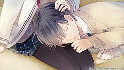 Sakai Toma – Toma used to be a child model – but the thing is he modeled as a girl until he grew too big to dress and still look like one. Apparently his shitty mom kinda threw it all on him and forced him into being an anorexic child just so he could fit into girls clothes etc. It’s his dark secret he doesn’t want anyone to know until Akane accidentally finds out when they run into his old fellow actor friend from the past. He also got left behind one year because of being sick a lot and missing school. Thanks to Akane noticing him always eating jelly drinks as “food” she offers him some of her food and turns out he really just loves omurice. After being extremely tsun to her he gets all dere dere and goes to a movie with her. His fans aren’t to pleased with them being together but just kinda stare from a distance and don’t directly bully her thank god. One day his mom calls him saying now that he’s no longer sick from anorexia and has become #1 at the night club, all these new modeling offers are coming back in for him. She tells him to come back home and be a model again but he doesn’t want to be her doll again. He then gets all depressed and starts to be a massive blob all over Akane telling her to make decisions for him – since everyone’s always made decisions for him his whole life. Akane tells him to make his own decision and that she’ll support him as a model if he decides to continue. After she stops whining about holding him back they’re both able to confess their feelings to each other. The route was probably the most straightforward romance route out of all of them but too bad the heroine’s weird actions and attitude kinda killed the mood for me. Only good thing she did was get Toma to properly eat food again and work on maintaining a healthy weight. In the epilogue, Toma is working on achieving his dream of becoming a professional actor. He then has a special night at the club just for Akane where she his guest rather than a maid there lol so they can ichaicha and kiss in privacy.