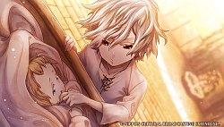 Clavier – I’m 99% sure Kuravia should be Clavier so I’m just gonna spell it as that lol. The route begins showing the Clavier and his band of not so merry men stole music sheets from Beethoven’s old house, killed his servants and then burned it to the ground. Clavier then reveals that certain people inherit the “Falga” of famous composers but sometimes if the person who is to inherit it doesn’t realize it, the power will disappear. Due to this, the music school began doing the Falga experiments trying to force it inside of children (and murdering most of them.) Dee was one of the few successes that received Schubert’s powers but now there’s another problem. The one who has inherited the powers of Beethoven is Hart, however Hart has no recognition of these powers. Clavier also has an arm injury so bad that he has almost lost all feeling in his arm…and due to this he intends to leave the music academy. He constantly has a jealous voice in his head telling him that everyone else is able to easily produce sound, and that Lied can hear the “voices of instruments” while Clavier is no longer able to do so.One day while at her library job, Lied finds a secret passageway through one of the bookshelves and when she goes down she finds a talking sword named Kanade who asks Lied to cut off Clavier’s injured arm. Kanade claims that if they don’t do this, a huge war will break out and tells Lied about the Falga experiments that Clavier participated in. She adds that Clavier just wanted to create a musical “army” more than anything else.