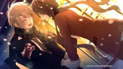 Yoshinari Hideaki – One of the side stories features Yoshinari kinda falling in love with Ichika and confessing to her. A side story opens up from Yoshinari’s POV and how he became good friends with Ichika’s bro Kazuki because the 2 of them had metal bands (named after old Otomate games) in common lol. They also go on a “date” to watch Kazuki’s concert where Yoshinari saves her from getting shot by some raging dude. We also get a bonus CG of Ichika hugging her otoutokun being glad that he’s okay (*´ω`). At the end he confesses his feelings to Ichika on Christmas Eve then proceeds to get cockblocked by everyone 🤣. I think he finally got to truly confess to her in the little short story in the omake section where Ichika thanked him and said she was happy to hear it.