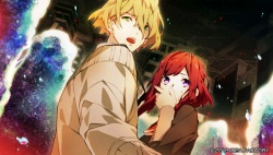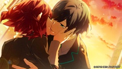 The 2 of them are then sent to act in a drama but because Hiyori refuses to say “I hate you” as a line to him, he takes the punishment for her and loses vision in his right eye. He also says he remembered there was 10 members in the last cast but only 9 are listed in the record as if 1 was completely wiped from existence. After realizing he isn’t the traitor, she hugs him but somehow he just stands there like a log and doesn’t react (which in his POV story is revealed he really wanted to hug her back but was busy trying to find out the truth). So while Kyouya thinks he’s a traitor, Hiyori is in turmoil because she wants to believe in him. And so a few nights later they meet up again where he confesses that he loves her and because of her he wants to actually take something in his life seriously for once. After she confesses the feeling’s mutual he agrees to re-enact the drama to get his eye back since at least after she can shower him with I love you’s XD. They kiss, then smile as they say I hate you and Souta gets his eye back. Souta then realizes that Mei was the one who got wiped from his memory and requests to reenact the previous drama to get Mei’s right eye back. Before Souta can reveal the truth, director shows up saying that Mei reached the 3000 point goal. Since not everyone can return he tells the director to send everyone but him back…. which is dumb since there’s 2 sponsors who are gonna come back to Arcadia anyway. 😅 Souta starts crying because he came back to save Mei and now he’s once again being sacrificed. Back in the real world Souta and Hiyori return to school together… but they’ve both forgotten about Mei. They decide to try to remember their lost memories as Souta kisses her by the window.