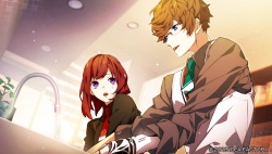 So here are the rules of this world aka Arcadia (boy Otomate sure loves this name.) Everyone acts in a drama and is judged by the residents of Arcadia and receives points. If someone in this group reaches 3000 points they will get a wish come true which includes “returning home”. However not everyone can return home and each time, and each route, someone has to sacrifice themselves and stay back. If you fail to act in a drama and get punished, you do have a chance to re-enact this drama and get your missing parts back – like how in every route Hiyori doesn’t want to push Takumi out the window so she loses her voice until she agrees to do it. Whenever something bad happens such as stabbing or any injury, the actors feel it, but just for a moment – and then they are fully brought back to full health as if nothing happened…so the physical injuries are gone but the trauma remains. On top of this, they are not the first “cast” and there have been previous cast in the past though the majority of them have met a dead end and never returned. Anyway more on the truth behind all of this in the true ending in the final route. Another note to make is the game has both a producer and a sponsor. The producer is the one who creates the dramas and the scripts that go with them while the sponsor is the person that brings people from earth to this Arcadia to be part of the cast. The director is the robot announcer man who explains all the rules and makes all the punishment decisions and he also adds a rule that if they can find the producer he will send everyone home (but if they point a finger on the wrong guy everyone will die.)