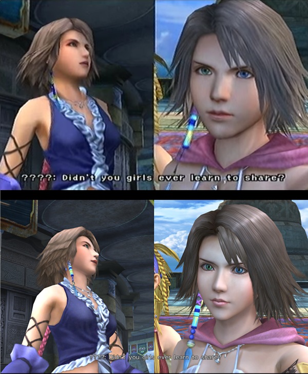 I also noticed they made Yuna’s legs extra thicc in the remaster but covered up more of her buttcheek from her booty shorts. Weird observation but I guess that’s what happens when you have to remake most of the character models. 😂 Anyways since at least Yuna actually had some emotions/personality in this version, the derpy faces were less terrible because at least somewhere underneath that mannequin exterior there was a happy girl going on an adventure.
