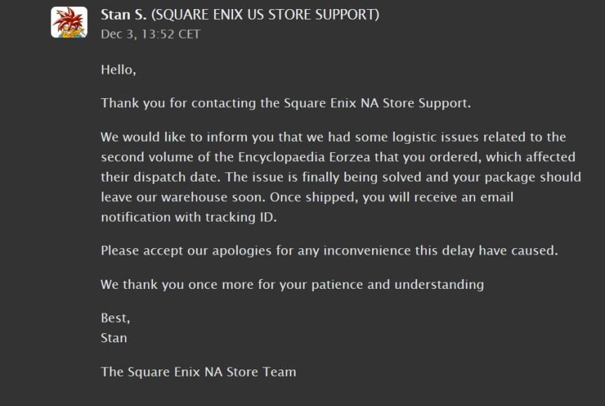 Meanwhile the Japanese E-Store everyone got their book all fine, and on top of that they actually sell both the ENGLISH and JAPANESE editions of the book! Japan also puts the Japanese edition of their book on Amazon Japan but try to find the English version other than Square Enix store? NOPE. So they keep these products hostage for English players and then keep people’s money hostage by giving them the run around on top of it! I do pretty heavy online shopping and I’ve never dealt with a store THIS incompetent in my life. How does Square Enix allow these fools (Scalefast) to continue running this store? How are they just straight up not losing money? At least 2 of my friends were affected by this and multiple others who voiced their concerns on the FFXIV forums. After doing some digging apparently they also failed to deliver people’s 4.0 expansion preorders last year as well. If you google there are COUNTLESS ISSUES with this store. But have they attempted to fix or do anything about this? No. They could literally just partner with Amazon and probably be more competent than whatever monkeys run their store right now.