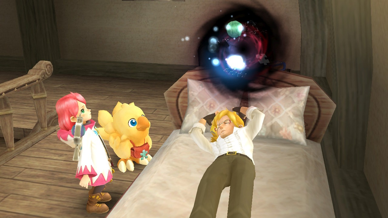 I sure hate to leave games unfinished but I just couldn’t bring myself to play this anymore. It started out really cute game where our hero Chocobo gets sucked into some world where a clock tower constantly meddles with people’s memories and makes them forget who they are. It’s up to him to go into their “dungeon of memories” to recover their memory. The dungeons are old school style (because this is a port of a 10 year old game) where you fight some durdles, get some items and beat up a boss.