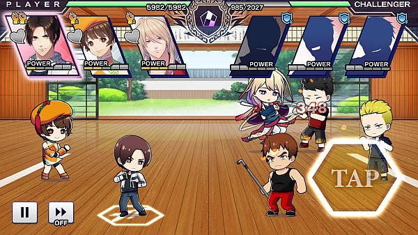 While the ikemans are busy showing off in style and telling her how they will defend her, the dude randomly runs off and she realizes these guys all train at her new workplace. For some reason she did 0 research about her position and has no idea that the training dojo is actually for fighting (kakutogi) and all the guys in there are competing in a world tournament called the King of Fighters. She’s like wah wah I was only told I would cook and clean but Kyo tells her to dealwithit and become their manager. 😂 So now miss clueless here is a manager of a fighting team but she also then gets to meet and make a man harem of more fighting dudes when she comes to the fighter introduction ceremony for KOF. And basically that’s the main plot of the game and as usual since it’s a mobile game there’s a few things to do.