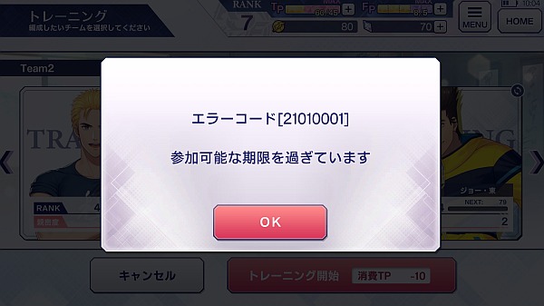 Also that error code is because of time zone. That’s explain why I can’t training above 10 P.M ._.