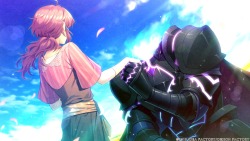 Miser Rex – Miser is the extremely sawayaka dark lord who just wants to chill and drink coffee at Enchante. He’s also a cheat dark lord in a sense where he can pretty much destroy whatever he wishes but is constantly upset he has no cheat to save anyone (as he often regrets in other people’s routes.) Unlike the other 3 he doesn’t live at the cafe and he just visits from the underworld every day. Even when Kotone asks if he can live on Earth he refuses because he’s hiding a secret from her. So after a bunch of portals mysteriously start popping up on Earth, Kotone is kidnapped by another “dark lord” so Miser and co go to the underworld of Asmodia to save her. And so the other dark lord, Asmodeus forces Kotone to marry him because idiot fell in love at first sight lol. When Kotone asks him if there’s 2 dark Lords, he tells her that he’s the only one. When she asks him about Miser he says he’s never heard of him. When Miser finally shows up to save her he admits he’s the fake dark lord. After they fight suddenly mystery man shows up and Miser turns into his true demon form destroying Asmodeus’ castle. He tells Kotone that anything he touches turns to ash and to stay the hell away. He always needs time to “calm down this power” which is why he has leave Kotone every night and refused her offer to live at Enchante. He returns to his world alone, a sad empty void filled with ash and full of mounds of the dead bodies of its former residents.