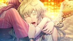 So now Il knows he has to die in order to stop the AI from destroying Earth but at the same time he’s heartbroken that he finally is able to love Kotone and all that is coming to an end. The night before he talks to Kotone and kisses her telling her he wants to do many things with her after everything is over. When they get to Caelm, Il first has to defeat Solitus who is just yanhomo and just wants Il back at his command and doesn’t actually care about God’s orders 😂. Now that Solitus awakens his emotions fully not wanting Il to die his wings start turning black and he no longer hears orders from god. Il thanks him for being with him all this time as his “friend” even when Il was still an emotionless puppet. When they go to talk to the AI God, Il reveals that the main sever Mihael that holds the souls of all the previously killed angels and humans is the reason why angels “fall”. The emotions from the souls are always there no matter how many times they try to reset them and format the program. The souls of the dead angels including his old angel friends all help him out to defeat and destroy the AI God. Unfortunately by doing this Il has to temporarily become one with it and in doing so he loses all his soul and emotion and becomes a doll again. In the epilogue, a year goes by after this and Il became a lifeless doll and Caelm is in chaos because now everyone has emotions and no real leader. In the meantime Solitus and Epilogi join forces to try to get everything under control again. Fortunately Il gets a happy ending and his soul is reborn once again and he goes back to Kotone not knowing why. As Kotone tells him her feelings once more the miracle of love happens once again and he remembers his feelings for her. They once again confess their love and kiss. 😘 I do have to say I quite liked Ishikawa Kaito’s voice acting in this one because it was different from his usual “angry yelling guy” role lol.