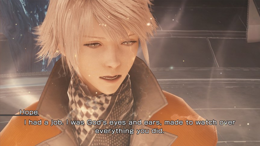 So the plot of the 13 series has become incredibly twisted and I’m gonna attempt to ELI5 it as best as I can, otherwise you can read wikipedia or the extremely detailed post explaining why the localization was poo. Basically after that DLC ending in 13-2 where Lightning became a table ornament with Serah’s soul trapped inside of her, she’s reawakened by the god Bhunibutt (Bhunivelze) 13 days before the world is going to end. Bhunibutt just wants a clean reset by erasing all the “mistakes” that were made in the last 500 years in a new world he’s gonna create. He asks Lightning to solve the turmoil inside the people who are still “alive” by listening to their problems and doing bear ass fetch quests. When the world ends, those souls who she’s “purified” will be able to be reborn, but unfortunately anyone else and anyone who’s died before this happens will be wiped off like they never existed. Unfortunately Lightning doesn’t know this until she talks to Cid from the first game (who I completely forgot about) on one of the last days in the game.