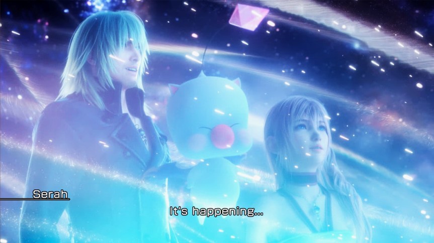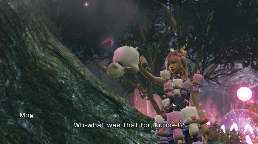 Every day she must return by 6AM (this game runs on a timer) and give all the souls she freed into the Yggdrasil tree, get some goofy outfit and talk to Hope about what happened because he becomes her secretary in the “ark”. He’s a vessel of his former self but inside he’s a 1000 year old man and still harbors the feels for Lightning. Unfortunately he cannot act up on them because Bhunibutt is literally stalking everything he does. So then in addition to this, we got this annoying girl Lumina, who the ENTIRE TIME I thought was like young Serah – but turns out she was actually young Lightning – a piece of Lightning’s heart that she shut off in order to become the strong cool beauty character to take care of Serah after their parents died. So this Lumina basically stored Serah’s soul inside her for a bit so that it wouldn’t get sucked into the chaos (the Chaos is that bullshit that happened in the end of 13-2 and kinda wrecked everything.)