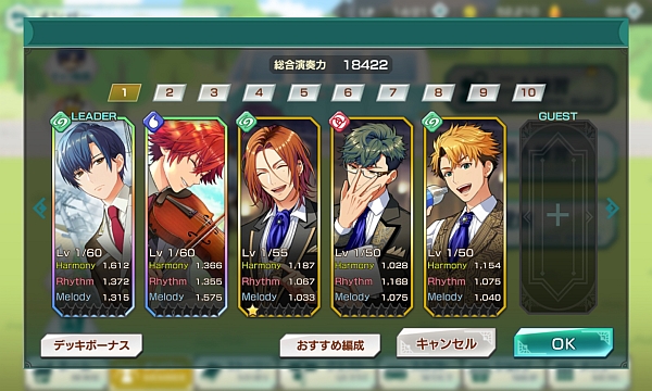 Edit: After a week I decided to uninstall this game. I finished the main story in chapters 1-4 but once that was done I found myself bored out of my mind. As I mentioned the stamina ratio in this game is very crappy so you’d do like 1-2 concerts and then have nothing to do unless you had tickets (and you only get 1 per day once you finish all the newbie missions.) Also you need an active list of friends, and I mean active – actually doing performances daily. If you just had friends logging in that wasn’t enough to qualify for the daily rewards and making friends in the game was difficult since most people want whales for friends to be able to get the huge boost during performances (again rewarding pay to winners heavily.) Anyway I would have put up with all of this shit tbh if there was actual romance. I grinded out Sakuya’s card pretty far but all the stories were very Cero A implied stuff. It was nothing like yumecast (which is kinda what I expected) but I guess I shouldn’t be surprised by Koei/Corda series. I guess my “otome” expectations were too high, and that’s kinda why I just couldn’t continue. If the game had no heroine or romance (like Nier Reincarnation) then I wouldn’t expect as much but the game implies that you can “romance” the guys but in the end it’s all just implied brief b/s that goes nowhere. So with that in mind, and overall the grind between new stories just not being fun I decided to uninstall. These otome mobage just don’t last for me….(´・ω・`)