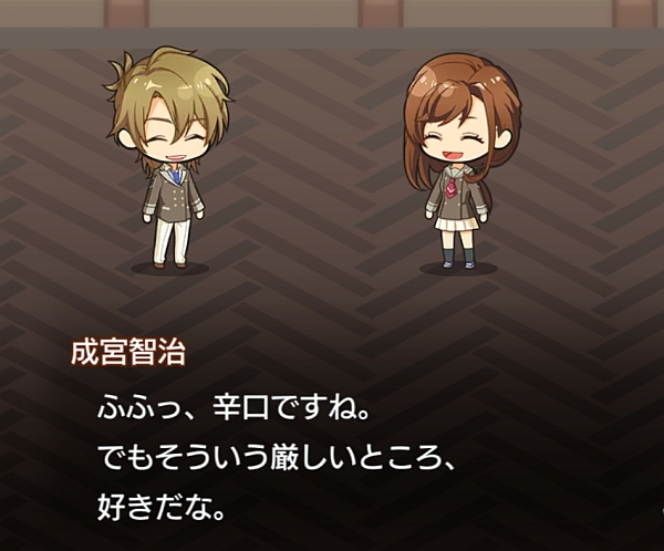 Yea I know this is a long stretch for 女性向け games these days but amazingly there is hints of romance and as you perform with the guys and give them gifts, it raises their affection and unlocks a romantic scenario. During the regular story there isn’t much romance WITH the exception of Osakabe (the megane 生徒会長) who takes no break in making sure you know he’s on to you ( ͡° ͜ʖ ͡°)✨ I’ve never appreciated Ito Kentaro more than I do now ‘`,、 ‘`,、 (‘∀`) ‘`,、’`,、.