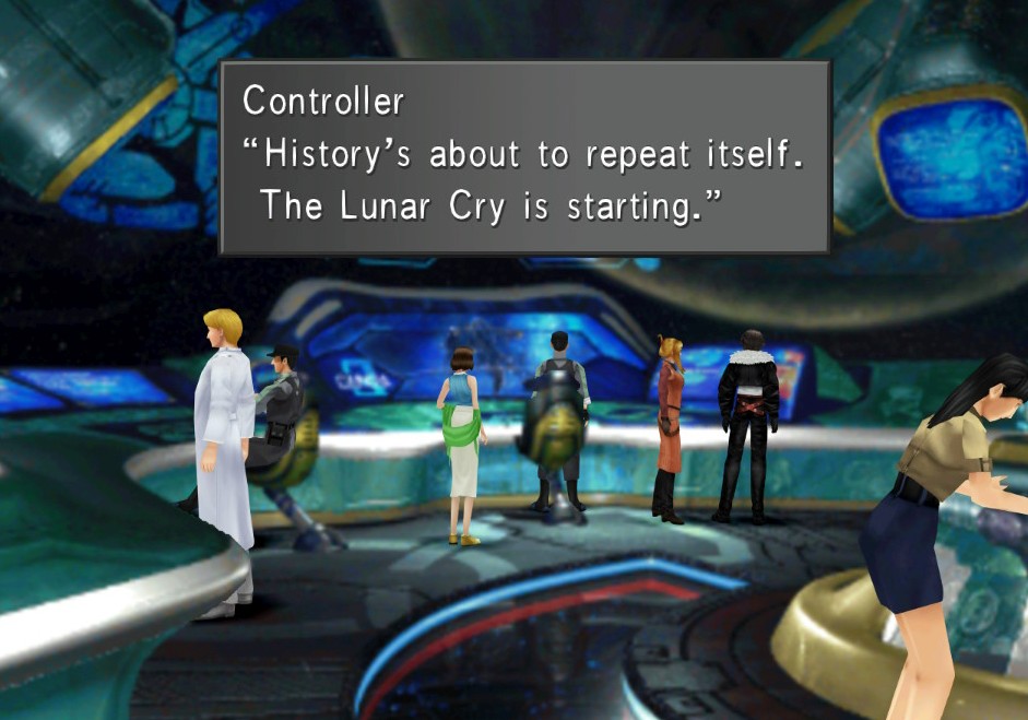 The other thing I was not really prepared for was the awkward 2D/3D hybrid system. I hesitate to even say something like “that’s what old games were like” because you can go back to older games in the series like FFVI which have a top down grid setup so you know exactly where you’re going and what you can interact with. It doesn’t need to be the modern hand-holding like fast travel or activation icons since even those really old games had a straightforward visual grammar that was easy to parse. The map design reminded me almost of those old Sierra and LucasArts adventure games, but the big difference is that those games again would have very clear indications of how the player could travel (like having a doorway, ramp, street, etc. showing directions) and enough leeway regarding interactive elements that you weren’t playing such extreme situations of Hunt The Pixel trying to figure out how exactly you need to be facing in order to press the conspicuous button on the control panel.