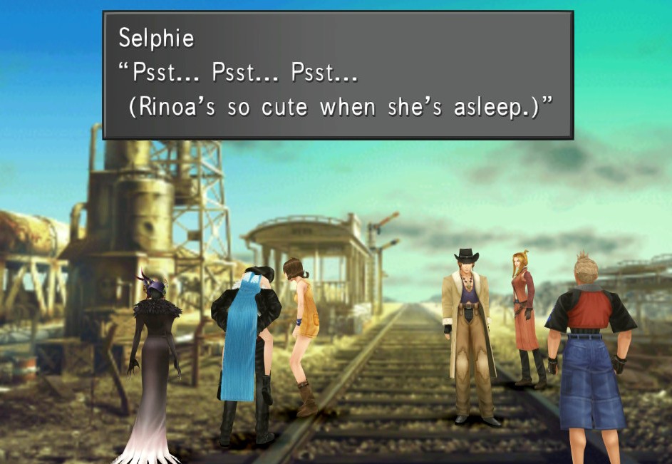 Actually the entire Rinoa x Squall thing is so strange to me? He basically Whatever’ed her in Disc 1 & 2 no matter how much she (and others ) tried to get them together. Then Rinoa goes unconscious for most of Disk 3 and he’s like noo Rinoaaa and when she finally comes back to life he goes back to ignoring her yet again. And then she’s captured and he’s like NOO RINOAAA again, then once again she’s saved he’s like nope don’t care lol. And then FINALLY in the CG cut scene he’s actually smiling at her and kissing her!? Makes me legit wonder if that’s really Squall or if that’s actually Rinoa’s Final Fantasy~. 😂😂😂😂