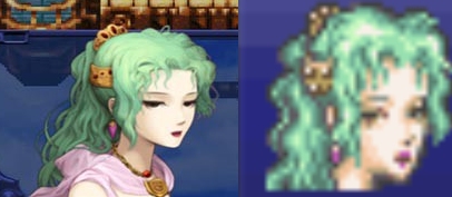 Disclaimer: I used cheat codes to give myself 9999 HP, max attack (so most of my hits did 7k-9k) and turned off random encounters to speed up the game. Thanks to this it only took me a few days to get through the story, but I imagine that if you were playing this legit you’d need to do a lot of grinding, leveling up and and making sure you had all the best equipment (which fortunately you can mostly buy in shops through out the game.) I play these RPGs like I play visual novels – I just wanna see the story, and I couldn’t care less about a 20+ year old battle system. After seeing how all the newer FF ports basically give you “legit” cheat modes like Turbon, 9999atk etc. I realized that Square Enix also realizes nobody wants to grind through this old shit. They recently announced remasters of their pixel series FF1-6 so maybe they will add that as an option in those games. Additionally, the biggest reason I used an emulator is because like with FF4 and a FF13-2, the Steam reviews had many complaints about not only the game crashing a lot, but also they had completely redrawn the sprites to look really weird. Example below: