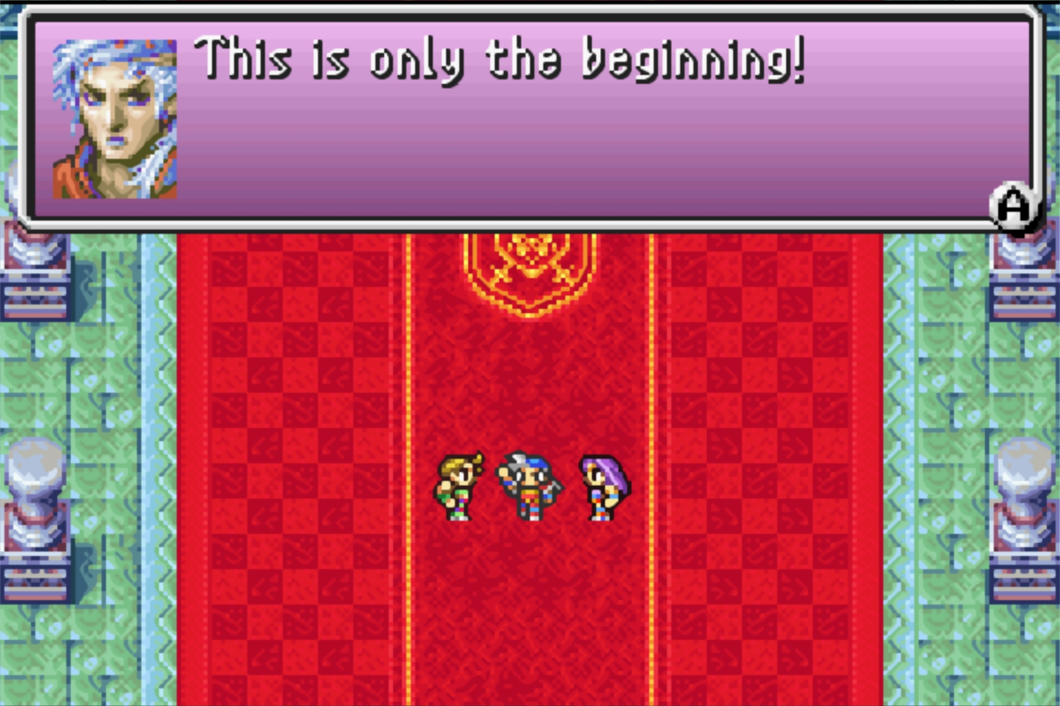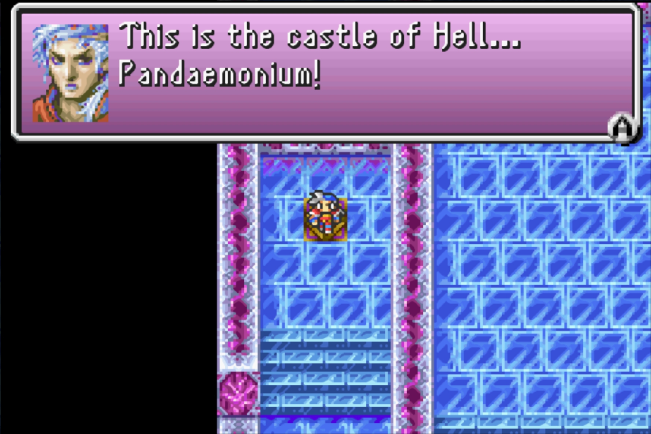 On the topic of dungeons, while most of them were straight forward, at points I actually had to refer to a dungeon map because of the RANDOM ENCOUNTER ROOM gimmick. This basically was a thing where every dungeon had a bunch of “trap” doors that when you enter, you’re going to face a random battle of monsters you have to fight (not even the no-encounter cheat could overpower this.) And while you try to exit the room you would inevitably have to fight another 2 times because each time you enter, it literally puts you into the middle of the room. 😱 Obviously, I was able to cheese these battles, but I can definitely see this wiping your party and annoying the hell out of you. Not to mention, like with FF13-2, the high encounter rate would almost certainly break your train of thought to the point you might forget where you were coming from and going to, which would then lead you to yet another high encounter room and make you wanna throw your GBA out the window.