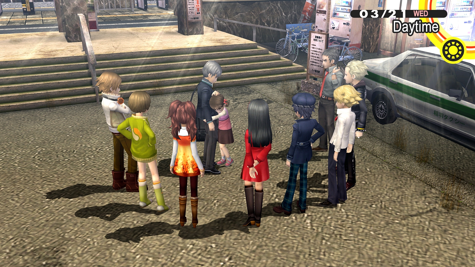 The story takes place in the inaka town of Inaba where our protagonist (who I named Narukami Yuu after the anime) comes to live with his uncle and cousin for a year while his parents are overseas. He attends the local school where he makes friends with his classmates Chie and Yosuke. Chie tells him about a rumor going around about the Midnight Television that shows some interesting things whenever there’s fog outside at night. Yuu decides to watch the マヨナカテレビ and realizes his hand can slip inside the TV like into another dimension. After telling his friends they try to jump into the large screen TV at the local department store Junes and end up falling into what looks like a foggy tv studio. When inside they meet up with a kigurumi bear named Kuma (Teddie in English). And from then on they get entwined in a series of murders and try to figure out whodunnit while at the same time trying to solve the mystery fog that keeps coming to Inaba every month.