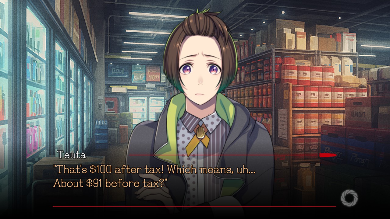 Bustafellows takes place in New Sieg, which is Definitely Not!!!!!!!!!!!!!!! New York City. (The game explicitly says this during the omake where Teuta accidentally calls Sakrada). Extend (and the localization team) did a pretty good job at trying to pull in American cultural elements rather than making one of those “ME no namae wa MIKE GUNEAGLE DEEEEEEEEESU!!!!!! This is how we greet people in America! (starts making out with you)” anime Americas. So while there’s some embellishment for storyline purposes, we’re not talking something like Mad Bull 34 here. THAT SAID, they made a HUGE cultural faux pas when they assumed that New York has tax on groceries!!!!!!