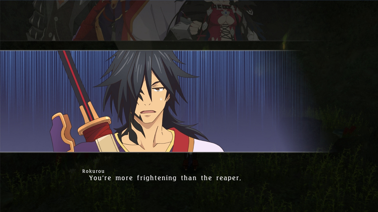 The glib analogy would be “Velvet is girl Yuri”, but the key difference between them is that Yuri has a very droll detachment about everything while Velvet is always seething. So both of them will say, straight up merc someone in cold blood, but Yuri will nonchalantly dust his hands afterwords while Velvet will unleash a torrent of “YOKUMO!!!!!!!!!!”s and “ZENBU!!!!!!!!!”s the whole time. Or how the skits will have Yuri respond with like “Oh boy, the derpwaifu is derping yet again” while Velvet is more about “No. Shut the fuck up.”
