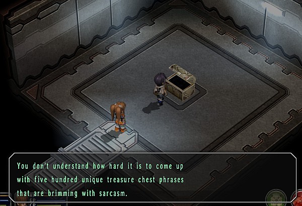 Anyway, all in all a pretty fun game, despite “mazes” (lol) and combat (lol). It would’ve been even better if this was one really big game with the padding trimmed off and a better balance between cutscenes and interactive elements (we were constantly making “several cutscenes will now play in sequence” jokes throughout the game) and a little bit smoother questing. But hey in the end it’s still a JPRG that even the grognards at RPG Codex can recommend!