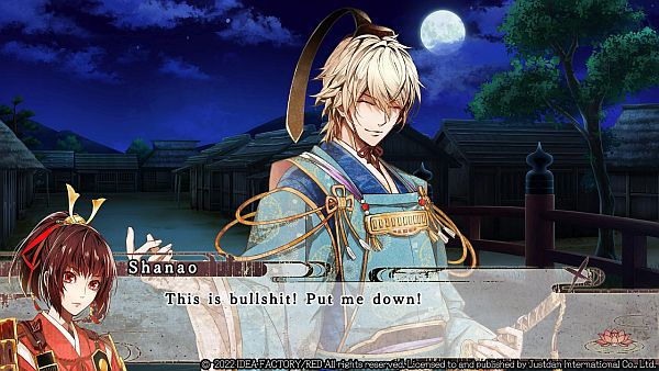 Unfortunately there were some additional annoyances like how there was clear bias towards the Taira brothers vs other characters. Especially Benkei who got derailed by them in his own route and Yoritomo who basically had barely any screen time outside his route. There was also a lot of cute otome-esque scenes that never had any CGs and definitely deserved one (´;ω;`). On the topic of visuals, the only women in this game who had a sprite were Shanao and the Taira sister Tokuko. None of the other women had a sprite and there was barely any women to begin with. I know it’s a war but….it was really strange. The battles were also extremely long and just kept going on and on and when you’re just watching 2 sprites on screen talking with cling/clang noises it gets repetitive and boring fast. The game also had a lot of repetitive scenes that I swore I saw in another route, but because there was maybe 1 or 2 different words or 1 different character in the scene, you had to watch it all over again (or force skip unread dialogue). The loading times for jumping to next choice were also annoyingly long. And finally, a localization only issue, but some stuff was really jarring, and ~creative~ (like the kind of shit I’d say in my blog but I’d never use in an official translation 😂).
