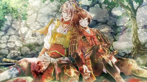While fighting Tomomori she tells him that his granny basically betrayed their clan by having Shanao raised as a Genji so she would come and destroy that Heike blood line with that same power they both have. Unfortunately this has the opposite effect and turns on Tomomori’s siscon-dar and he goes all hentei mode saying if they both live they should just live together as siblings (́◉◞౪◟◉). At the end of the battle, the stupid Genji soldiers start rambling how they’re afraid of Shanao and they should just kill both Shanao and Tomomori together. Yoritomo of course won’t have this, and with Takatuna and some allied faceless soldiers they come to help Shanao. In the epilogue, Shanao basically opens up to everyone that she’s a woman and not a child of the Genji. Everyone is shocked but immediately accepts it. And so Yoritomo basically becomes the leader of Genji and Shanao becomes his waifu…which is kinda disappointing as it feels almost like a downgrade to her previous role. In the tragic end, Tomomori injures Shanao so badly, she becomes a vegetable. She can’t see, speak or move and she wants to die but Yoritomo refuses to let her die and just keeps taking care of her like his blowup doll. 😐 I didn’t really like this route because it took a REALLY long time for Yoritomo to warm up to Shanao and for half his route he was just like “yea I’ma just use her cause she stronk lol, don’t care that she’s completely out of her mind yolo”.