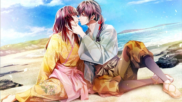 Eventually the emperor is like “if you agree to join me at the palace then you can marry Shanao you like her right and I just want control of Genji!” And obviously that would involve making the Genji fight each other so since Shugen didn’t want this – he asked Yoritomo to pretend to kill him and Shanao to make it look like they both died in battle. In the epilogue, turns out after they fall into the water they quietly swim away and live a life away in peace. In the tragic ending, Yoritomo kills Shanao for real for some reason but Shungen ends up surviving. ಠ_ಠ He then breaks down mentally and goes into yandere mode blaming everything on the stupid Genji clan. He then vows to slay the entire Genji clan in revenge for her. Shungen was pretty cute and his route was really sweet but then got derailed by war as usual and kuso gge emperor and the momentum got kinda lost until the ending.
