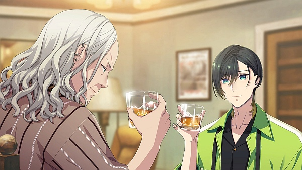 Crow Miller – Warning, this is my fav character so incoming word dump lol. What I liked at the start of his common route is the fact that he’s a simple man: Teuta is crying about Luka and Adam, he cheers her up with her favorite magazine and a box of donuts. 🥰 Most of the common route I recalled the scenes with the other guys and honestly Crow’s were just the sweetest and my absolute favorite. ♥️♥️ Crow’s sleeping schedule is backwards from everyone else so he typically sleeps during the day and wakes up all night. He even has dreams that he’s this ikeman during a heist and Teuta yells “I love you!!” to him over and over🥹🤣 Crow and Teuta even have their own special hand shake and want to see movies together on the biggest screen in town. One day after Teuta and Crow leave the cafe for some reason characters from Sidekicks, Chika and Nora suddenly tumble Crow over and handcuff him. Teuta demands to see his police badge but he just shows her his Sakrada driver’s license lmfao. 😂 When they get to the police station Luka is laughing her ass off seeing Crow in handcuffs lmao. Apparently Luka had called Chika and Nora over to New Sieg to help her create a team to battle cyber terrorists. Luka had asked for their best cyber specialist but Sakrada was like if we send Shishiba we’re basically screwed so uh here’s Chika instead. (Also because then Shirai Yusuke would have to voice 2 characters at once 🤣🤣🤣).