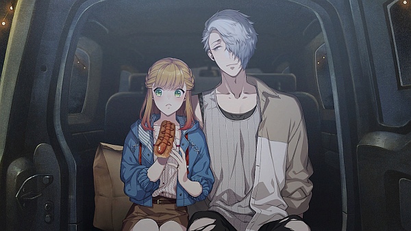 To de-stress Teuta drives them to an empty area outside the city and Crow thinks they’re gonna have sexy time but to his disappointment Teuta just wants to lay on the grass and look at the stars lol. And then when cars come by she screams at the cars to get her stress out without waking anyone up 🤣. The entire scene gave me FFX Tidus and Yuna laughing scene flashbacks lmao. Gosh please I would have rather have had some cute cuddle sexy time instead but I guess that would be o/c for Crow but aaaahhh. 🥹 The next morning Teuta is irritated because she has to rewrite her entire article and even spills jam on her clothes. Crow knows it’s best to let her sort out her anger but he makes her TOAST WITH A JAM THAT’S A HEART SHAPE FOR HER LIKE WHAT A BAE. 🥰🥰🥰 She gives him a goodbye kiss as she goes to work and he starts babbling like an idiot in front of Helvetica and Shu. ♥️ After Teuta’s article gets better, she goes to a fancy restaurant with Crow to celebrate and they even dress up. Unfortunately they get into a dumb fight because Teuta is annoyed that Crow only ever does what she says, and does everything she wants without ever putting in his own opinion. She worries that she’s “controlling” him and one day he would get tired of her and leave her. Their fight gets so loud the people around them are like “what a cute little couple fight aww 😚” 😆. Anyway honestly this whole part was so annoying to me and reminded me a bit of Shu’s route where Teuta just got immature and whiny for no reason. Like wow getting mad that your man agrees with you on everything? Really?? ಠ_ʖಠ It’s like the writers couldn’t figure out what conflict to add to this route since Crow is such a sweetheart lol. Crow is actually happy that Teuta thinks this because that means he’s actually done everything she wanted but says he will try to work on giving her his opinion more often. Turns out all the places Crow takes her to like the restaurant or the river edge were all ideas he got from Limbo and Juno and he ends up spilling the beans about it to Teuta lol. He then gives her a present where he paid money to name a star in the sky after him (Idk how this even works realistically speaking??) and tells Teuta when she’s feeling lonely or sad she can look up in the sky and think of him watching over her. He then claims that this idea was 100% his own and nobody else’s 🤣.