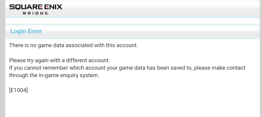 But this is on par with them. Just like the time where they screwed over many people who preordered FFXIV lore books off their god forsaken online store. As for me, I will give them another 1-2 days to fix this login nonsense, but if they don’t (and I expect them to do nothing) I will just uninstall. Even if I get back to this game, I will never spend a dime on it anyway. It will probably just have the same fate as their winners such as Mobius Final Fantasy or Echos of Mana. The entire experience has left such a bad taste in my mouth I’m on the verge of uninstalling Nier Reincarnation, which I have been playing actively for 2.5 years. However at least in there my account is actually backed up L O L. At this point it’s probably better for me to spend my time getting through my RPG backlog while waiting for FF7: Rebirth instead. ┐(´д`)┌