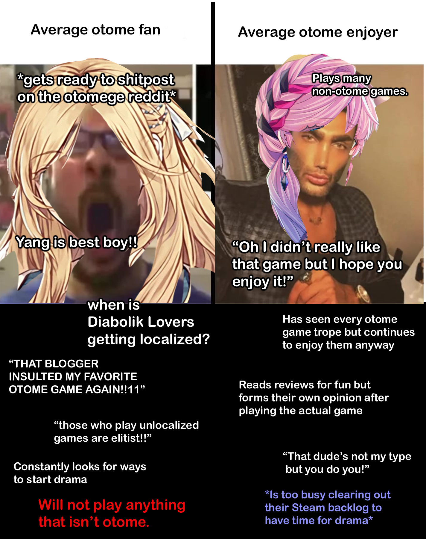 I want to give a shoutout to all you amazing peeps who still swing by this blog, even if it’s not really all about otome anymore. I’ve kind of moved on, you know? Most otome games are now just hanging out in my “meh, maybe I’ll snag it on sale” category, just like when I usually buy a JRPG. It’s been pretty chill just blabbering away in my own little corner of the internet all these years. It’s hilarious to look back at some of my posts and laugh at the absurd games I’ve endured. Now, let’s be real, most new otome gamers who started with localized games probably have no clue that I even exist. But honestly, I don’t even mind. It’s awesome that otome games are becoming more mainstream in the West. We don’t need everyone fighting over the same “spot” and bickering about differing opinions (although, let’s be honest, that still happens over at the Otomegame Reddit, amiright? ๐). I always thought that when otome games started fading away, I’d shut this blog down. But now, I’m enjoying writing about all my gaming adventures, especially with my hubby chiming in on my reviews. His take on a game is usually worlds apart from mine, so it helps me see things from a different perspective during the same play-through. Keep on rocking, my friends, thanks for sticking around and thanks for 13 million page views!!