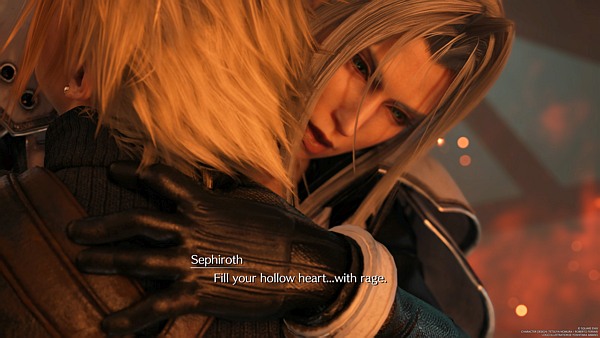Not much to say about characters but obviously Yuffie and Cait Sith were the new commers. Both of them were pretty annoying to me but Yuffie eventually at least got slightly more tolerable, meanwhile I could never really think Cait Sith as cute. He sounded way too much like an old man trying to sound cute in some cat’s body and it was really weird. Tifa and Aerith stayed about the same though I have to give major props to Tifa for putting up with so much bullshit from Cloud this game. Every time he went into his yaoi trance with Sephirot, she had to literally snap him out of it. ( ‘д‘⊂彡☆))Д´) パーン By the end of the game I think she was tired of his bs as much as I was and it ended on a really negative note. Like it feels like my Cloti ship was sailing but then it hit a rock and just kinda sat there. It didn’t sink, but it wasn’t going anywhere either and the game was last minute trying to be like “look here’s some Clerith as a parting gift guys!!” Since I’m team Zerith, the entire thing just felt so forced and unnatural to me I honestly am not sure what they were trying to do with having her suddenly turn into Casper the Friendly Ghost. One ??? I had was about Fujiwara Keiji and Reno. As you know, Fujiwara Keiji passed away right before Remake came out so they replaced Reno with a random girl in this game during the Turks scenes. However at the end, Reno came back and had some voice dialogue and I’m confused as to how? It didn’t sound like it was pre-recorded from another game? Did they use AI to generate his voice??? I heard they were going to change his voice actor in the next game so I’m curious how that will pan out….