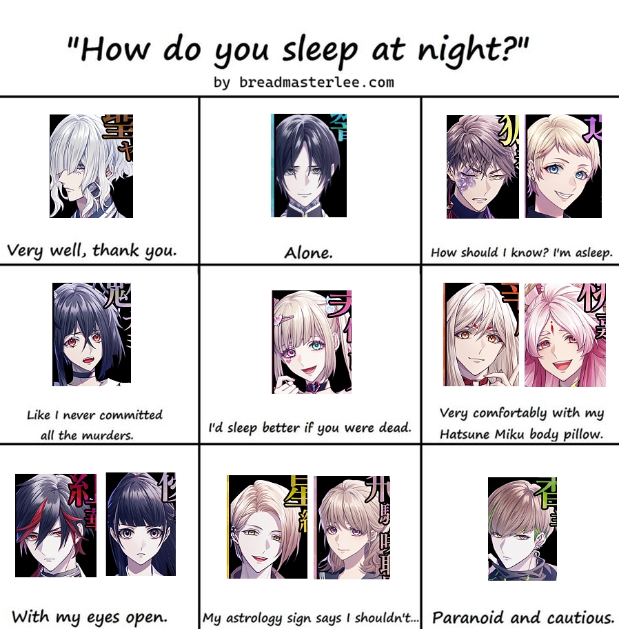 Despite my grumblings, I am considering getting the fandisk, but unlocalized. I want to see what Misa’s way of speaking or reacting sounds like in Japanese because it was really difficult to tell the nuances in English. Also as I mentioned I want to see romantic scenes the way they are meant to be portrayed. I feel like playing the localized version was a huge disservice to myself, as snobby as that sounds. I don’t know how to describe it, but there are just some phrases in Japanese that SOUND BETTER in context than the English equivalent I saw that they chose to use. I don’t think it’s a matter of Japanese vs English but I truly think that you need a bit of human touch or experienced otome gamer to really play through these games to see that just translating text doesn’t convey the mood or atmosphere. (Something shitty companies using AI to translate will never understand.🤪) Anyway I leave you with a random character meme I made based on my thoughts of each character: